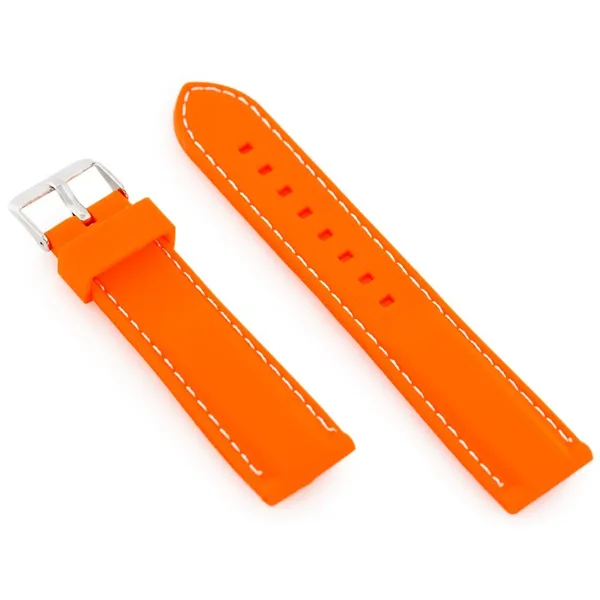 Narancssárga gumióraszíj fehér varrással, 22 mm