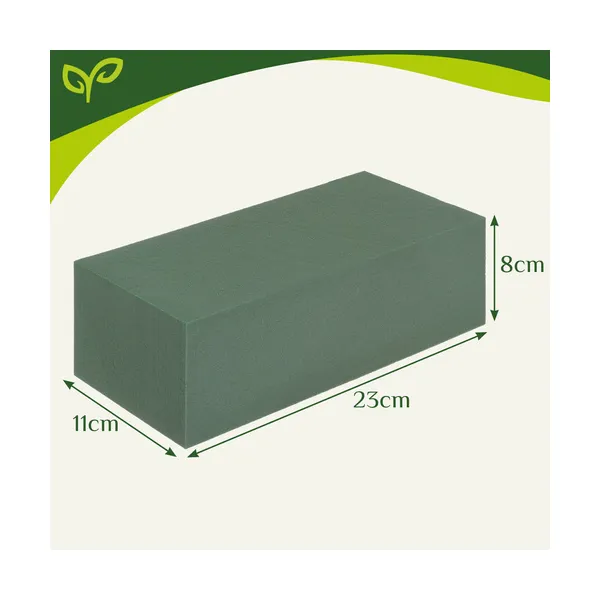 Nedves virágszivacs friss vágott virágokhoz, amely segít a dekorációk, asztaldíszek, kosarak és virágkompozíciók tartósabb és stabilabb elkészítésében. A szivacs vízzel feltöltve fokozatosan adja le a nedvességet, így a virágok tovább maradhatnak frissek, miközben a szárak biztos tartást kapnak.
