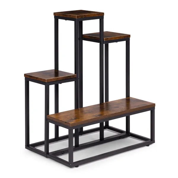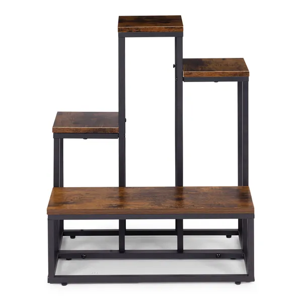 Négy polcos álló virágtartó állvány, loft stílus, acél/fa, 67 cm