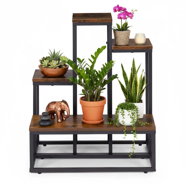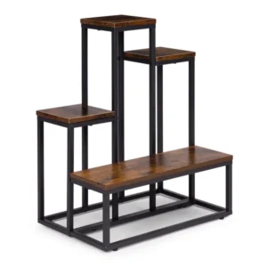 A loft stílusú, álló virágtartó állvány segítségével rendezetten, mégis látványosan mutathatod be növényeidet a nappaliban, előszobában vagy akár az irodában. A porfestett acél váz és a fafurnér hatású forgácslap polcok modern, ipari hangulatot kölcsönöznek bármely helyiségnek, miközben hosszú távú stabilitást biztosítanak.