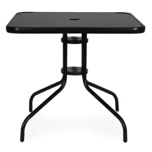 Négyszögletes kerti asztal 80×80 cm edzett üveg, napernyőnyílás, fekete