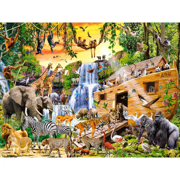 Merülj el a bibliai történetek világában a Noé bárkája témájú, 3000 darabos puzzle-lel! A részletgazdag jelenet a monumentális bárkát és a köré gyűlt állatpárokat ábrázolja, gazdag színekkel és izgalmas kompozícióval – minden összeillesztett darab újabb felfedezést tartogat.