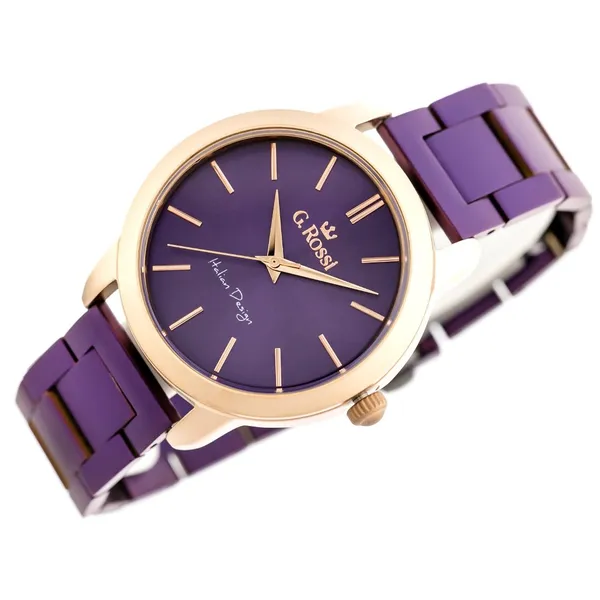 Elegáns, nőies megjelenésű кварц karóra, amely a lila és a rózsaarany színek harmonikus kombinációjával emeli ki az öltözéket. A matt felületű tok és fémszíj kifinomult hatást kelt, míg az antiallergén IPB/IPR bevonat fokozott tartósságot és kényelmes viseletet biztosít a mindennapokban.