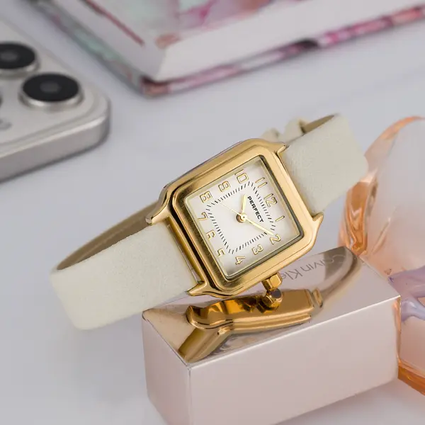 Ez a női karóra elegáns, mindennapi viseletre tervezett időmérő. A pontos japán Miyota кварц szerkezet megbízható működést biztosít, az aranyszínű tok és az ezüst számlap pedig könnyen kombinálható üzleti és casual öltözékekkel is. Az antiallergén bevonat kényelmesebb viseletet nyújt az érzékeny bőrűek számára.