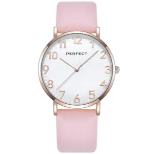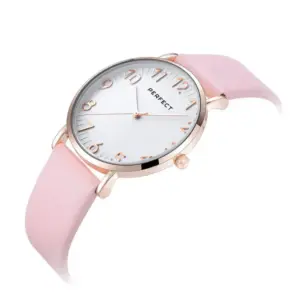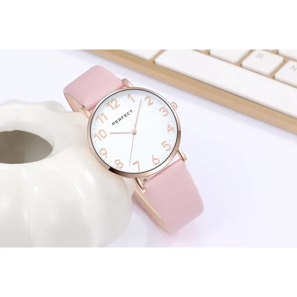 A Perfect női karóra elegáns, sokoldalúan viselhető modell, amely remek választás mindennapi használatra és alkalmi megjelenéshez is. A letisztult, kerek tok, az ezüst színű számlap és a rózsaarany színű részletek harmonikus, nőies összhatást teremtenek.
