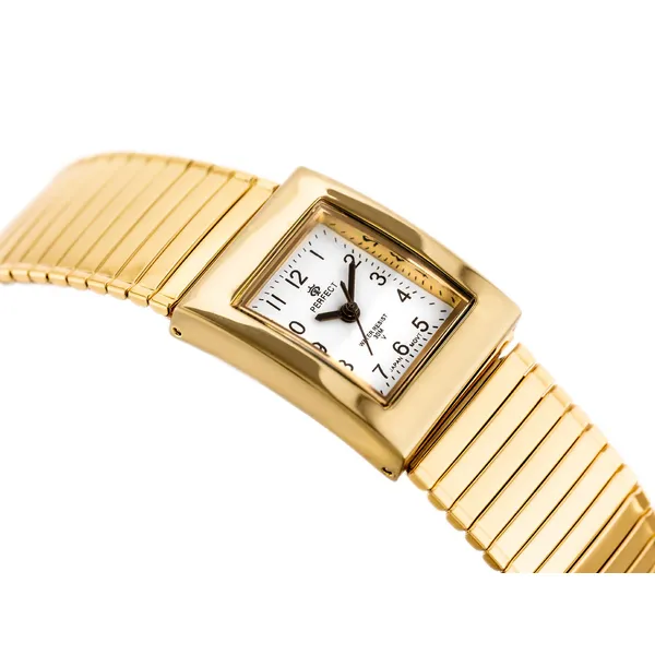Az arany színű, rugalmas fémszíj kényelmes viseletet és gyors felvételt biztosít, míg a fehér számlap jól olvasható marad a mindennapokban. A díszdobozos csomagolásnak köszönhetően ajándéknak is remek választás.