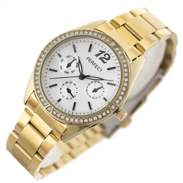 Elegáns női karóra klasszikus, kerek tokformával, aranyszínű fém szíjjal és ezüstszínű számlappal. A japán gyártású кварc szerkezet pontos időmérést biztosít, míg a fekete indexek jól olvashatóvá teszik a számlapot a mindennapokban is.