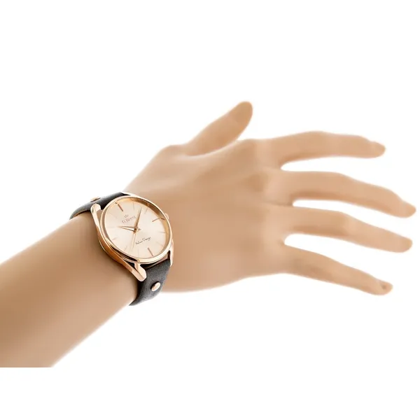 Ez a női karóra kifinomult megjelenésével remek választás mindennapi viselethez és alkalmi öltözékhez is. A rózsaarany színű tok és számlap harmonikusan illeszkedik a barna bőrszíjhoz, így elegáns, nőies összhatást nyújt.