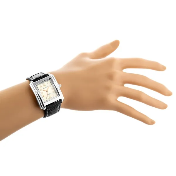 Stílusos, nőies karóra ezüst számlappal és kényelmes fekete szövet szíjjal, amely könnyen illeszkedik a hétköznapi és alkalmi öltözékekhez. A japán Miyota кварc szerkezet pontos működést, a mineral üveg pedig tartósabb mindennapi használatot biztosít.