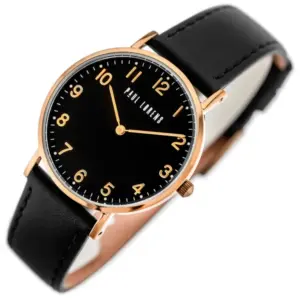 Elegáns, nőies karóra fekete bőrszíjjal és rózsaarany részletekkel, amely könnyen illik hétköznapi és alkalmi öltözékhez is. A pontos japán kvarc szerkezet, a minerálüveg és az ajándék díszdoboz még vonzóbbá teszi a választást.