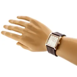 Elegáns, nőies karóra pontos japán Miyota кварc szerkezettel, amely megbízható társ a mindennapokban. A négyzetes rózsaarany színű tok, az ezüst számlap és a barna szíj harmonikus megjelenést kínál, míg az ásványi üveg tartósabb használatot biztosít.