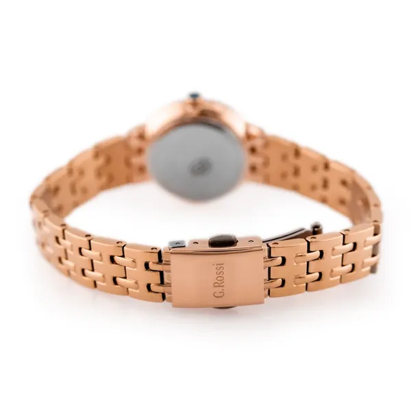 • Rózsaarany színű számlap, tok és fém szíj