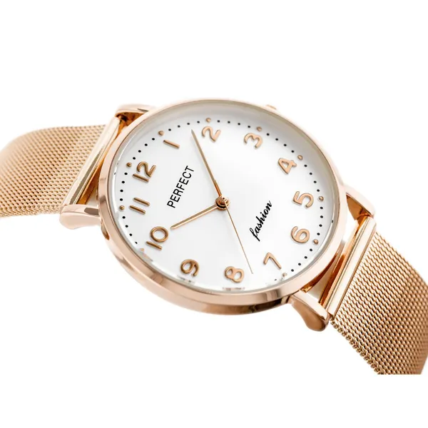 Elegáns női karóra letisztult, modern megjelenéssel. A rózsaarany színű fémhálós szíj és tok szépen harmonizál az ezüst színű, kerek számlappal, így ez a modell kiváló választás mindennapi viselethez és alkalmi öltözékhez is.