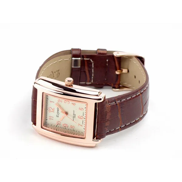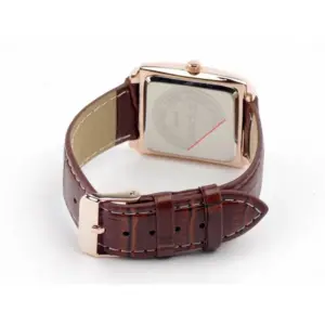 Női кварc karóra téglalap alakú ezüst számlappal, barna szíjjal