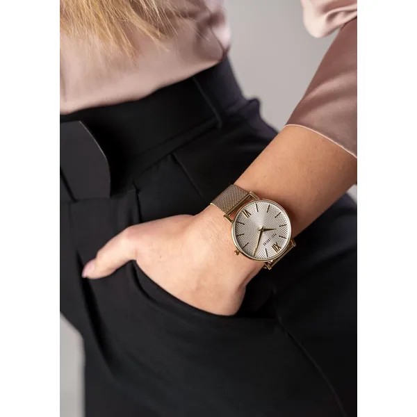 A Paul Lorens női karóra elegáns megjelenését a klasszikus forma és a modern részletek harmonikus kombinációja adja. Minőségi anyaghasználata, precíz kidolgozása és megbízható működése ideális választássá teszi mindennapi viselethez és alkalmi szettekhez is. Az aranyszínű tok és hálós fémszíj, valamint az ezüstszínű számlap kifinomult, nőies összhatást teremtenek.