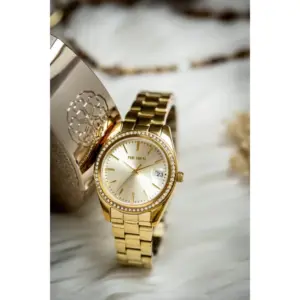 Elegáns aranyszínű női karóra cirkóniás tokkal, amely kifinomult megjelenést ad a hétköznapi és alkalmi szettekhez. A japán szerkezet, a dátumkijelzés és a rozsdamentes acél szíj egyszerre kínál megbízhatóságot, kényelmet és praktikus használatot.