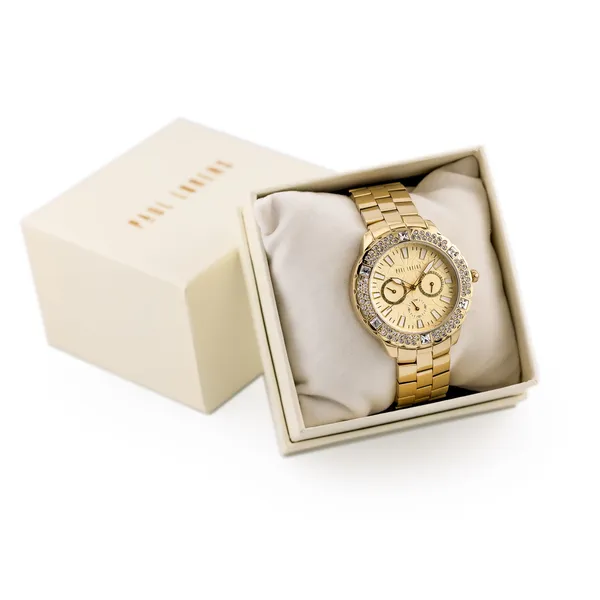 A Paul Lorens női karóra elegáns, divatos kiegészítő, amely a klasszikus stílust modern részletekkel ötvözi. Igényes kidolgozása, arany színvilága és dekoratív, cirkóniákkal díszített tokja kifinomult megjelenést ad a mindennapi és alkalmi öltözékhez is. A megbízható japán MIYOTA kvarc szerkezet pontos működést biztosít, a fém szíj pedig tartós és kényelmes viseletet nyújt.