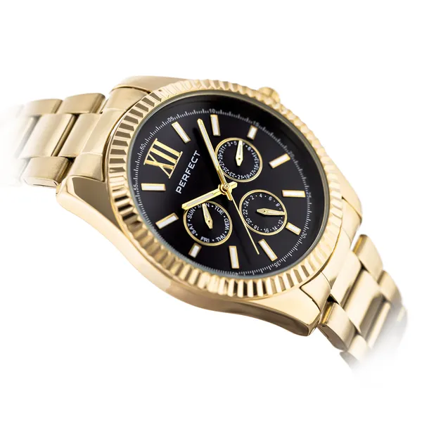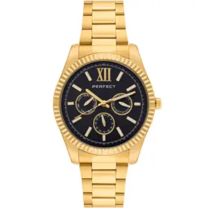 A Perfect női karóra elegáns, sokoldalúan viselhető modell, amely ideális választás a hétköznapokra és alkalmi megjelenéshez is. A fekete számlap és az aranyszínű tok, valamint a fém szíj kifinomult, nőies összhatást teremt.