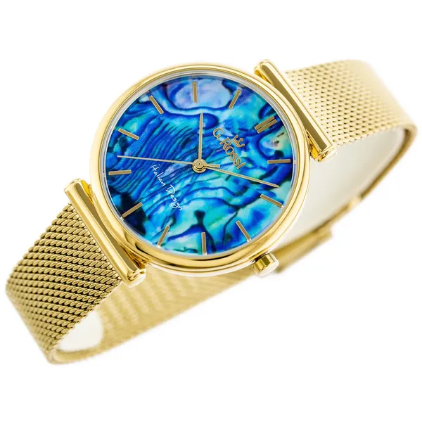 Elegáns, női кварc karóra aranyszínű tokkal és fém szíjjal, kék-türkiz árnyalatú, texturált számlappal. A megbízható Miyota szerkezet Japánban készült, az antiallergén IPG bevonat pedig fokozott tartósságot és kényelmes viseletet biztosít. Az állítható csatnak köszönhetően a méret könnyen személyre szabható.