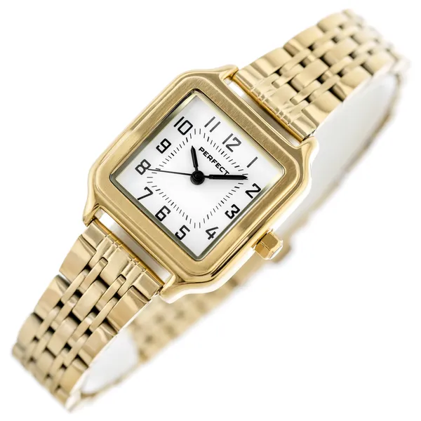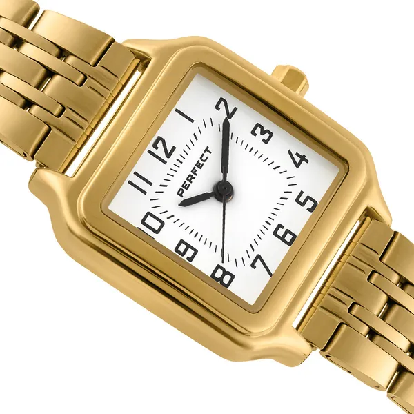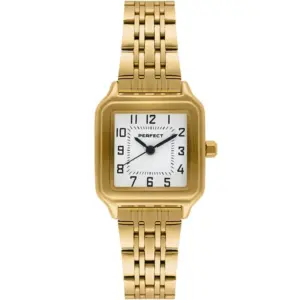 A Perfect női karóra elegáns és időtálló választás a mindennapokra és alkalmi viselethez is. Az aranyszínű tok és a fehér számlap klasszikus megjelenést ad, amely könnyen illeszkedik különböző öltözékekhez.
