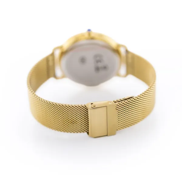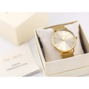 A női aranyszínű karóra elegáns, letisztult megjelenést ad a mindennapokhoz és az alkalmi szettekhez is. A precíz japán Miyota кварc szerkezet megbízható járást biztosít, míg az arany tónusú, kerek számlap és tok egységes, kifinomult hatást kelt. A rozsdamentes acél karkötő kényelmes viselet, az IPG antiallergén bevonat pedig tartósabb felületet és bőrbarát érzetet nyújt.