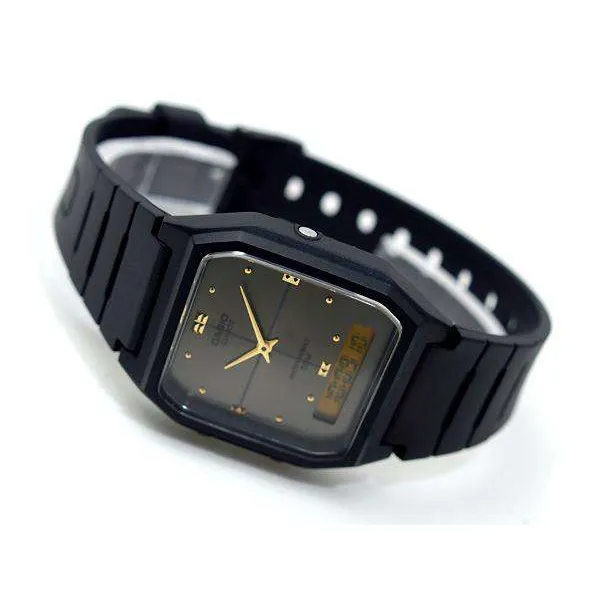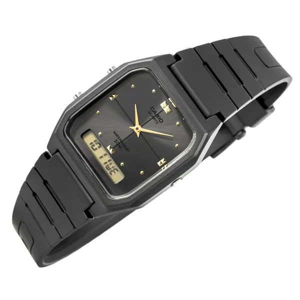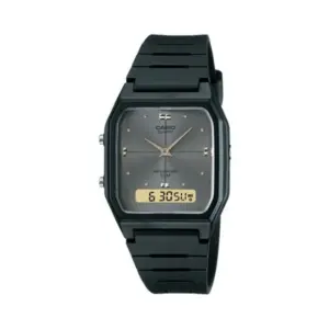 A Casio AW-48HE-8AV női karóra az elegáns megjelenést és a praktikus használatot ötvözi. Letisztult, klasszikus formája könnyen illeszkedik a mindennapi és az alkalmi öltözékhez is, miközben a fekete számlap és az aranyszínű mutatók, valamint indexek igényes, jól látható összhatást teremtenek.
