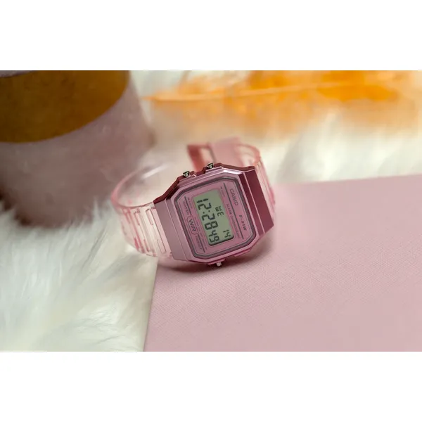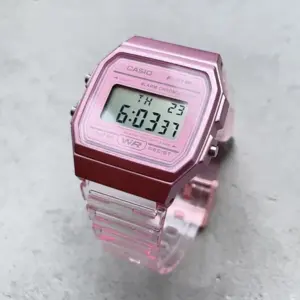 A Casio Retro Vintage F-91WS-4 egy igazi stílusikon, amely évtizedek óta népszerű a divat és a praktikum kedvelői körében. Ez a letisztult, könnyű és megbízható digitális karóra a retro hangulatot modern, mindennap jól használható funkciókkal ötvözi. A rózsaszín, áttetsző tok és szíj karakteres megjelenést ad, miközben a téglalap alakú digitális kijelző jól olvasható és azonnal felismerhető klasszikus megjelenést biztosít.