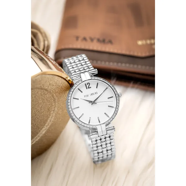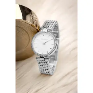 Elegáns, ezüstszínű női karóra fehér számlappal és cirkóniás díszítésű tokkal, amely kifinomult megjelenést ad a mindennapokra és különleges alkalmakra is. A japán Miyota kvarc szerkezet, a minerálüveg és a rozsdamentes acél szíj megbízható, kényelmes viseletet biztosít.