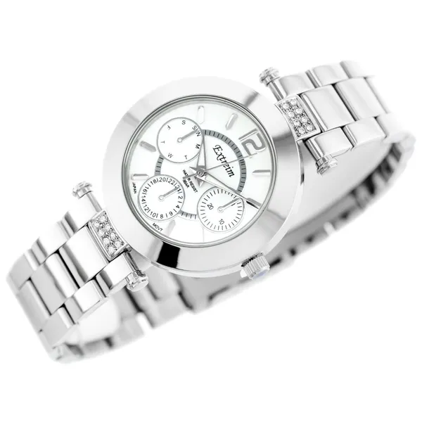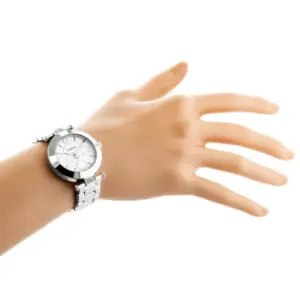 Elegáns, nőies karóra ezüstszínű fém szíjjal és letisztult fehér számlappal. A modell megbízható Miyota kvarc szerkezettel működik, amely Japánban készült, így a mindennapi használat során pontos időmérést biztosít.