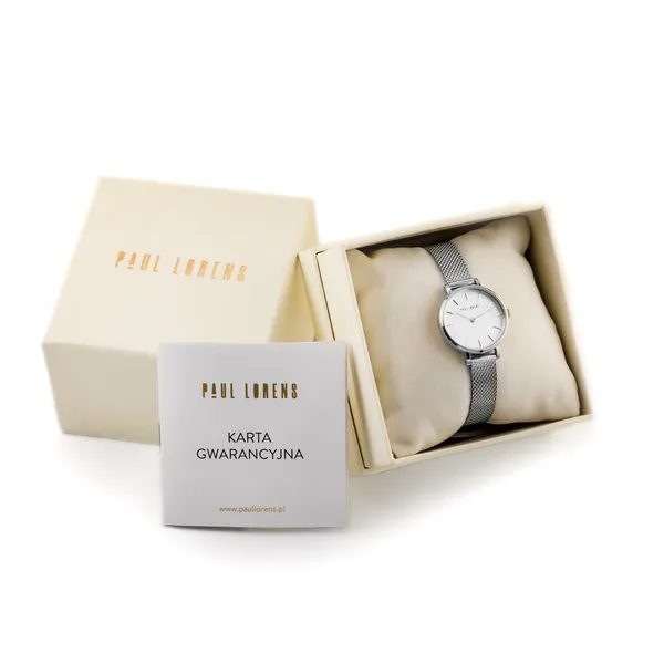 A Paul Lorens PL20004B-3C1 női karóra az elegáns, letisztult megjelenést megbízható működéssel ötvözi. Az időtálló formavilág, a gondosan kidolgozott részletek és a kifinomult ezüstszínű kivitel miatt remek választás mindennapi viselethez és alkalmi öltözékhez is. A fehér számlap modern, könnyen áttekinthető megjelenést ad, miközben a karóra diszkrét, nőies kiegészítőként emeli ki a megjelenést.