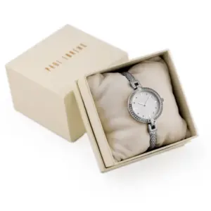 Női ezüst karóra fém szíjjal, kvarc, 32 mm, díszdobozzal