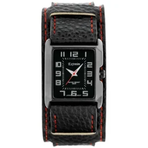 Stílusos, modern megjelenésű női karóra megbízható, japán Miyota кварц szerkezettel. A téglalap formájú tok és a fekete számlap elegáns, városi viselethez és hétköznapi szettekhez is könnyen illeszthető. A kényelmes textilszíj piros díszvarrással karakteres, mégis visszafogott részlet.