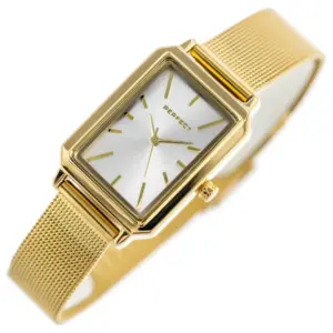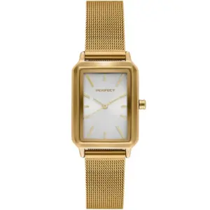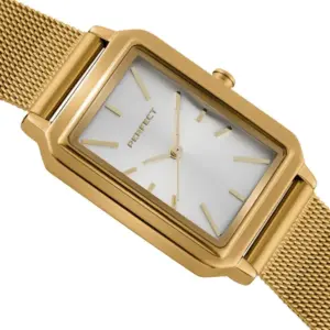 A Perfect női karóra elegáns megjelenésével és praktikus kialakításával remek választás mindennapi viseletre és alkalmi öltözékhez is. Az arany színű tok és fémszíj harmonikusan illeszkedik az ezüst számlaphoz, így kifinomult, nőies összhatást nyújt.