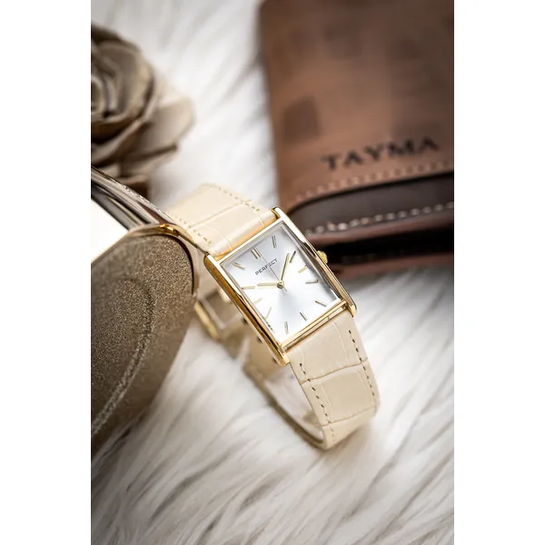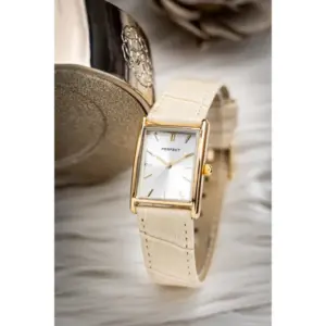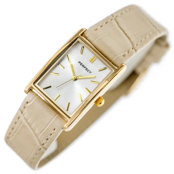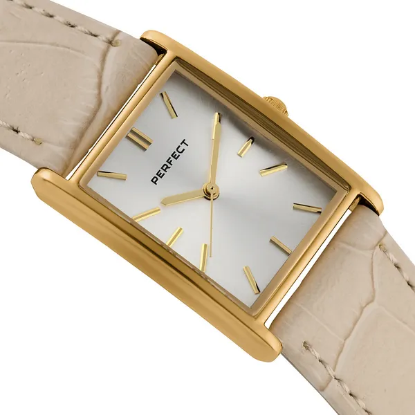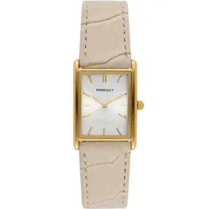 A Perfect női karóra elegáns, időtálló választás a mindennapokra és alkalmi viselethez is. A klasszikus kialakítású modell arany színű tokkal, ezüst számlappal és bézs bőrszíjjal készült, így könnyen kombinálható különféle öltözékekkel.
