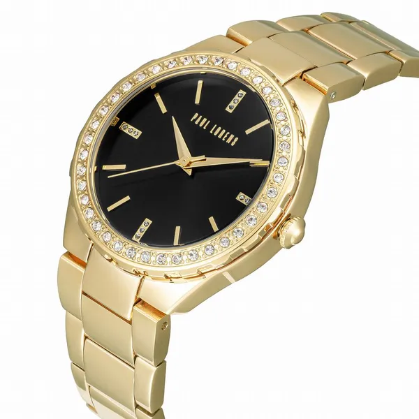 Az elegáns, aranyszínű Paul Lorens női karóra a mindennapok és az alkalmi viselet fényűző kiegészítője. Masszív, rozsdamentes acélból készült tokját csillogó církóniák díszítik, míg a fekete számlapon arany indexek emelik ki a modern-klasszikus hangulatot. Pontos járását a megbízható japán Miyota kvarc szerkezet biztosítja, a bőrbarát IPG bevonat pedig óvja az érzékeny bőrt.