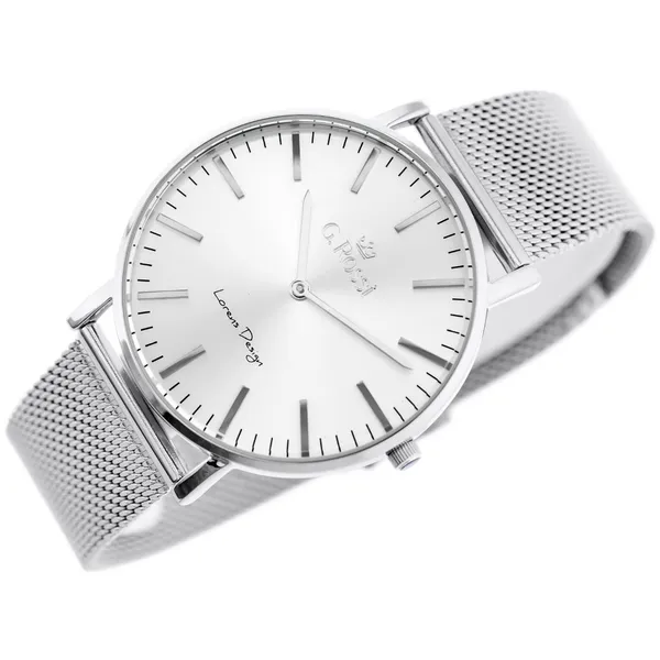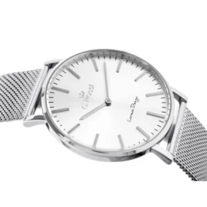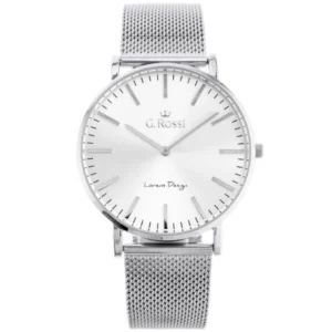 Stílusos, ezüstszínű G. Rossi női karóra japán Miyota kvarc szerkezettel, amely a megbízható pontosságáról ismert. A fém szíj és a tok hipoallergén IPS bevonata kíméli az érzékeny bőrt, a karcálló ásványi üveg pedig védi a számlapot. Elegáns ajándékdoboz jár hozzá, így tökéletes ajándék lehet.