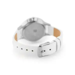 Női karóra fehér bőrszíjjal, fehér számlappal, ezüst tokkal