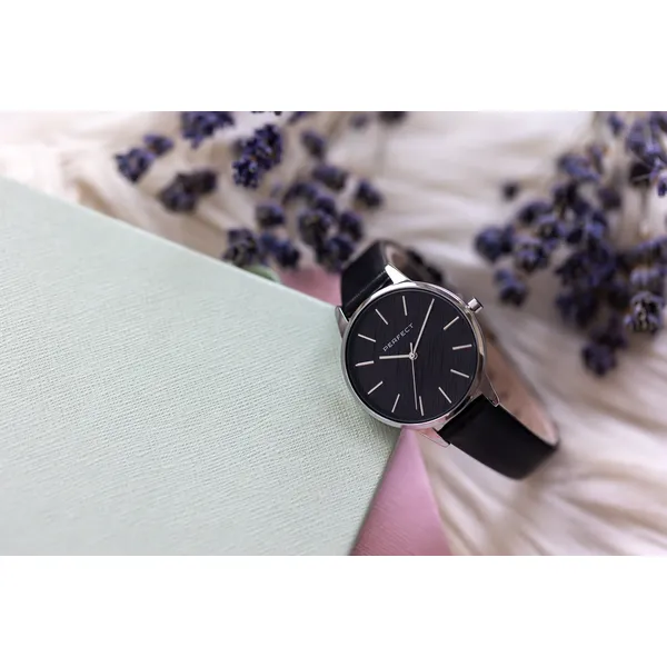 Ez a női karóra elegáns és sokoldalú választás a mindennapokra. A fekete számlap, az ezüstszínű tok és a fekete bőrszíj időtálló megjelenést ad, így könnyen kombinálható hétköznapi és alkalmi öltözettel is. A pontos japán kvarc szerkezet megbízható működést biztosít, míg a letisztult, kerek tok nőies és kifinomult hatást kelt.