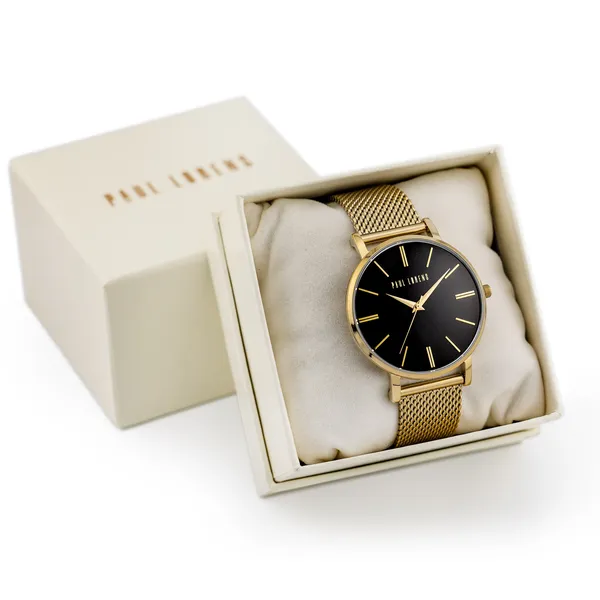 Női karóra fekete számlappal, arany hálós szíjjal 42 mm