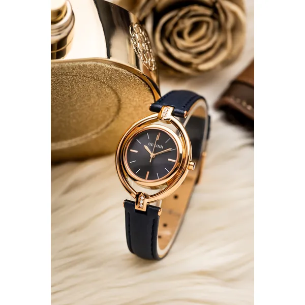 Női karóra sötétkék bőrszíjjal, rózsaarany tokkal 30 mm