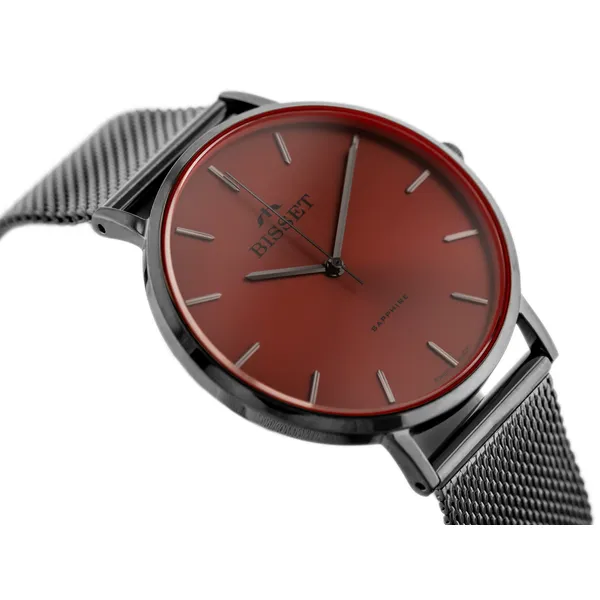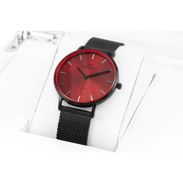 A karcálló zafírüveg és a svájci quartz szerkezet párosa hosszú távon is pontos, megbízható működést garantál, miközben a fekete nemesacél szíj és piros számlap merész eleganciát kölcsönöz. Kényelmesen állítható csatjának köszönhetően tökéletes ajándék bármilyen alkalomra.