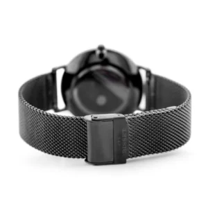 • Nemesacél tok és fekete PVD bevonatú szíj – tartós, allergiamentes, könnyen tisztítható.