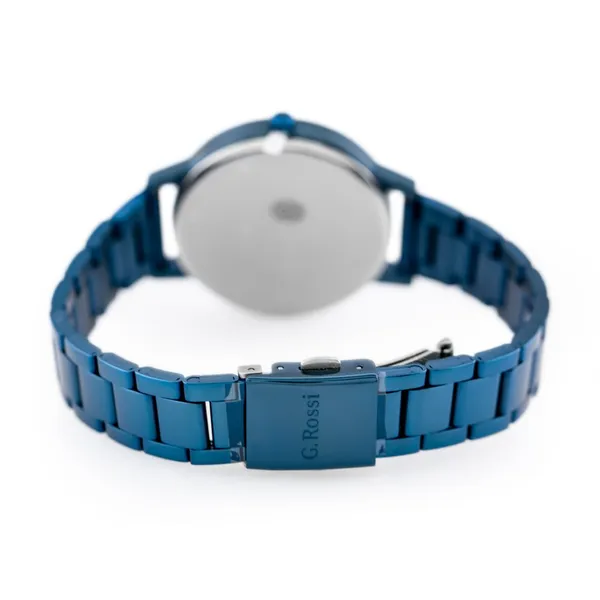 Női kék fém karóra kvarc szerkezettel, WR30, díszdobozzal