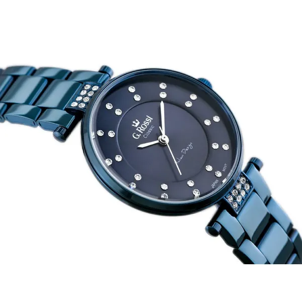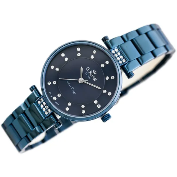 Elegáns, női karóra kék számlappal, kék tokkal és kék fém szíjjal. A kvarc szerkezet megbízható és pontos időmérést biztosít, az ásványi üveg pedig segít megóvni az órát a mindennapi használat során fellépő kisebb sérülésektől. A modell antiallergén IPS bevonattal készült a nagyobb tartósság és kényelmesebb viselet érdekében.