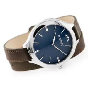 Női kvarc karóra 41 mm – kék számlap, barna hosszú bőr szíj
