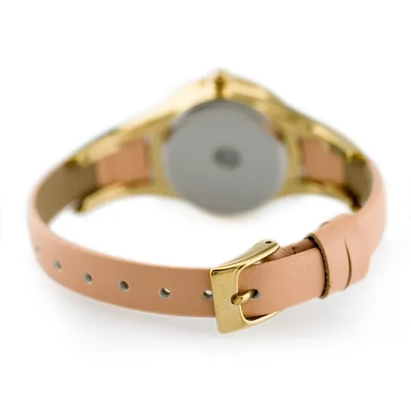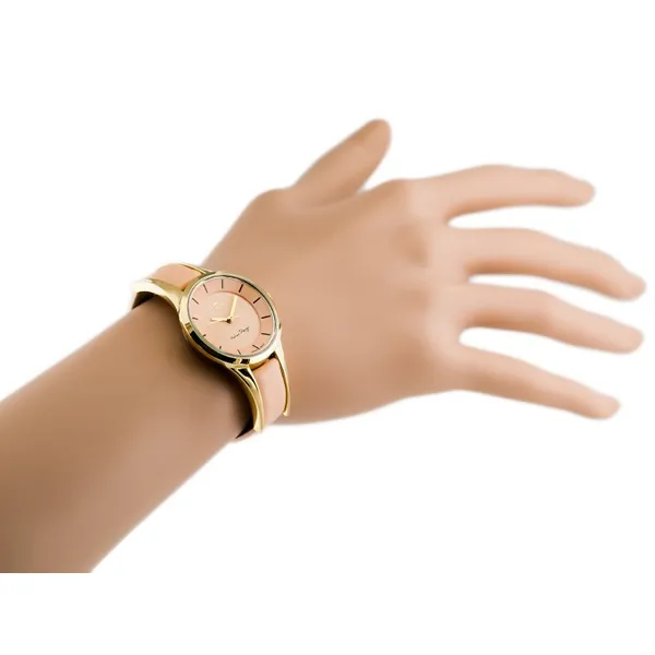 Elegáns, nőies karóra pontos japán kvarc szerkezettel, kényelmes bőrszíjjal és tartós ásványi üveggel. Az aranyszínű tok és a barack árnyalatú számlap kifinomult megjelenést ad, az ajándék díszdoboz pedig tökéletes választássá teszi ajándéknak is.