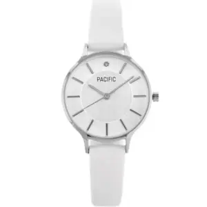 Női kvarc karóra ezüst számlappal, fehér bőrszíjjal 30 mm