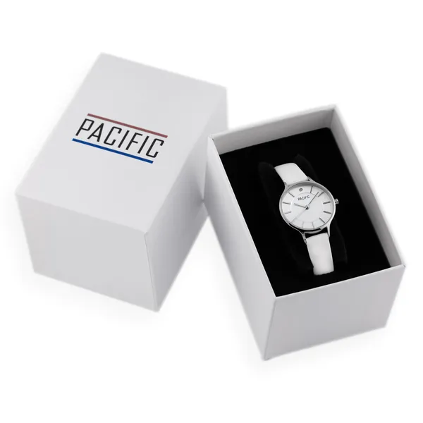 Elegáns, könnyen kombinálható női karóra pontos japán kvarc szerkezettel és kényelmes fehér bőrszíjjal. Antiallergén bevonata, állítható csatja és ajándékcsomagolása praktikus, szép választássá teszi saját használatra vagy ajándékba.