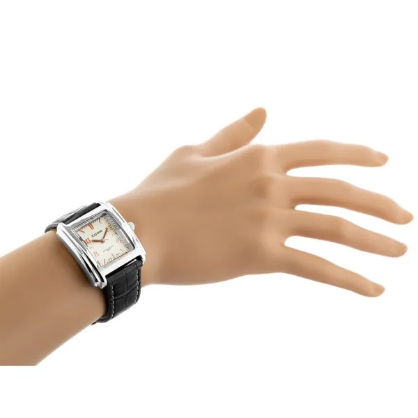 Elegáns, nőies karóra japán Miyota kvarc szerkezettel, amely megbízható pontosságot és kényelmes viseletet ad a mindennapokban. Az ezüstszínű számlap, a téglalap alakú tok és a fekete szövetszíj könnyen kombinálható különféle öltözékekkel.