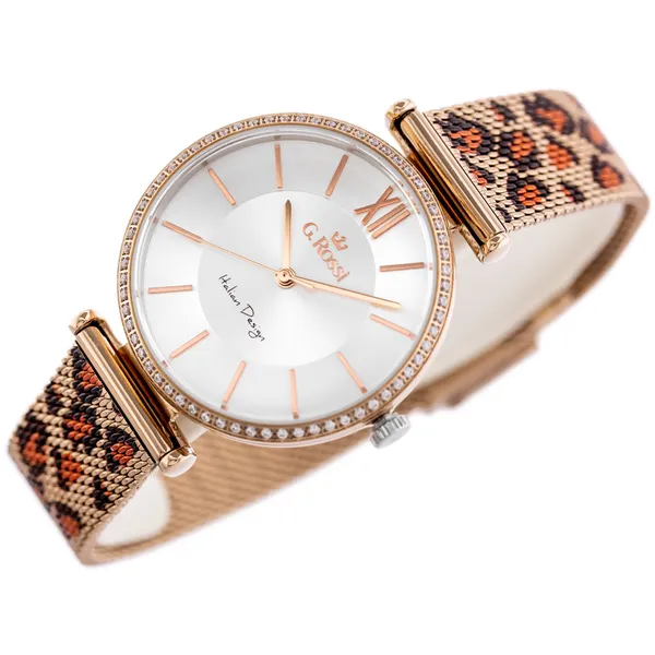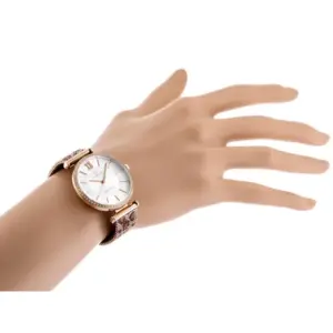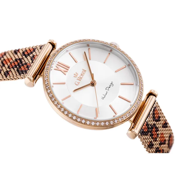 Elegáns női kvarc karóra letisztult, kerek számlappal és kifinomult rozéarany színvilággal. Az ezüst színű számlap és a rozéarany indexek harmonikus megjelenést adnak, így a modell remek választás mindennapi viselethez és alkalmi öltözékhez is. A japán Miyota szerkezet megbízható működést biztosít, a fém szíj pedig állítható csattal kényelmes illeszkedést nyújt.